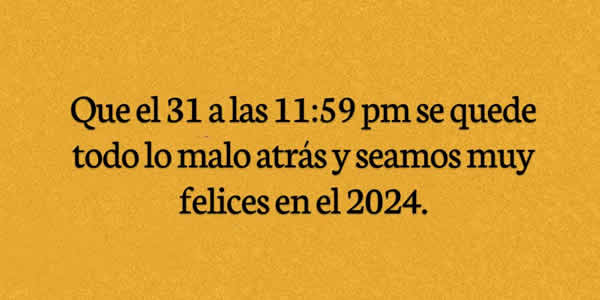 Frases y Deseos para la Nochevieja. Que el 31 a las 11:59 pm se quede todo lo malo atrás y seamos muy felices en el 2024. La Nochevieja, víspera de Año Nuevo o fin de año, es la última noche del año en el calendario gregoriano. Se le llama a los festejos del 31 de diciembre, previo a recibir el Año Nuevo.