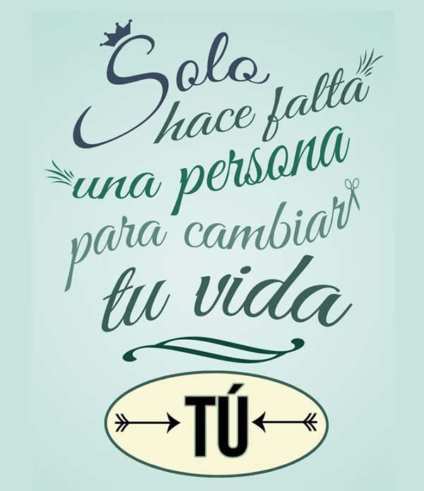 Solo hace falta una persona para cambiar tu vida, tu. La única persona que puede decidir sobre su propia vida es uno mismo. Decidir es resolver o hacer que se resuelva un asunto definitivamente y de una determinada manera.