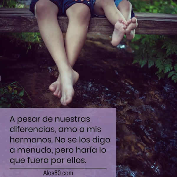 Frases bonitas con mensajes de amor y hermandad: A pesar de nuestras diferencias, amo a mis hermanos, no se los digo a menudo, pero haría lo que fuera por ellos. La diferencia es la cualidad, característica o circunstancia que hace que una persona o cosa sea diferente de otra. El hermano o la hermana de una persona es otra persona que tiene los mismos padres, o solamente el mismo padre o la misma madre. Menudo es algo [cosa] Que es de pequeño tamaño. La cualidad es el rasgo, componente permanente, diferenciado, peculiar y distintivo de la naturaleza o la esencia de una persona o cosa que contribuye, junto con otros, a que alguien o algo sea lo que es y como es.